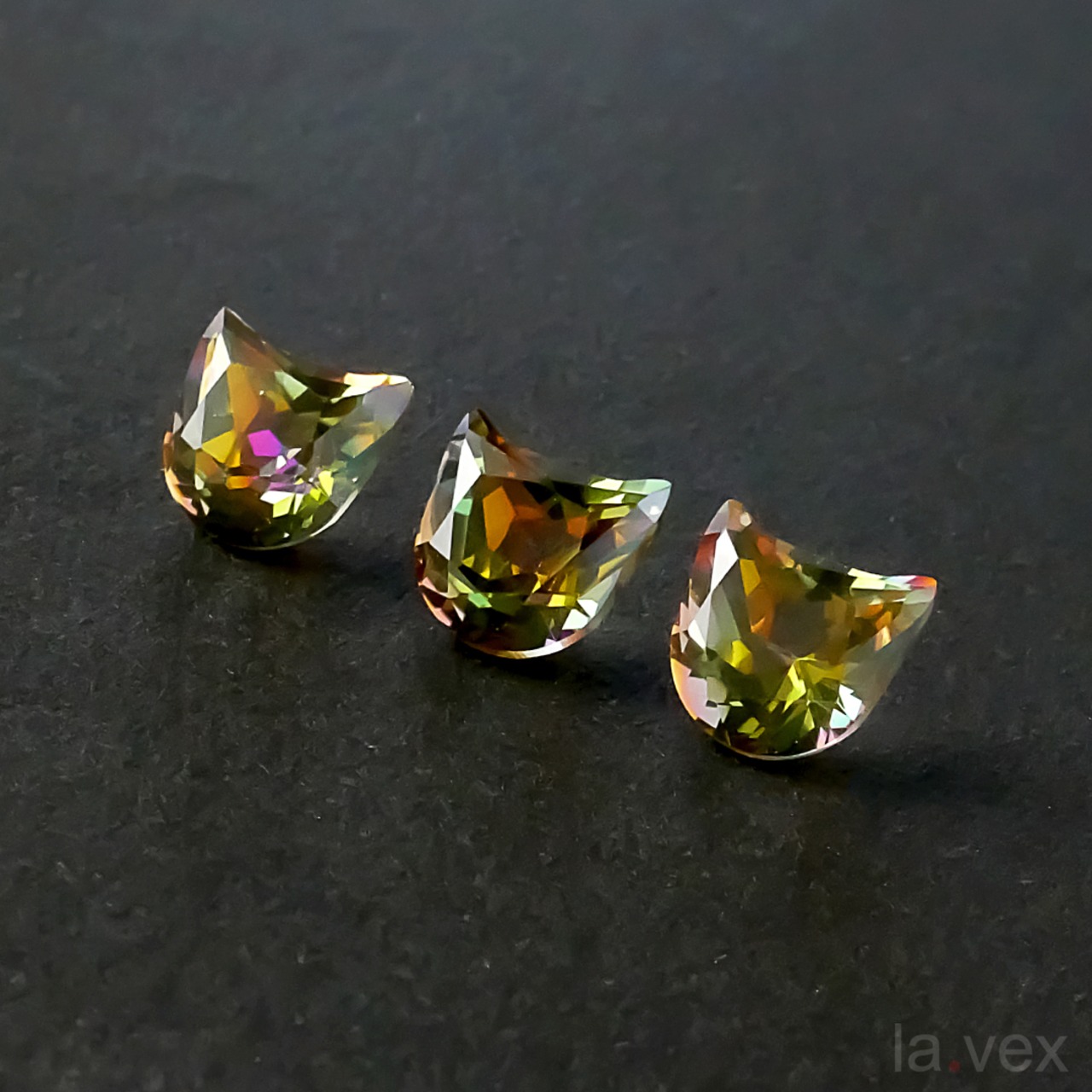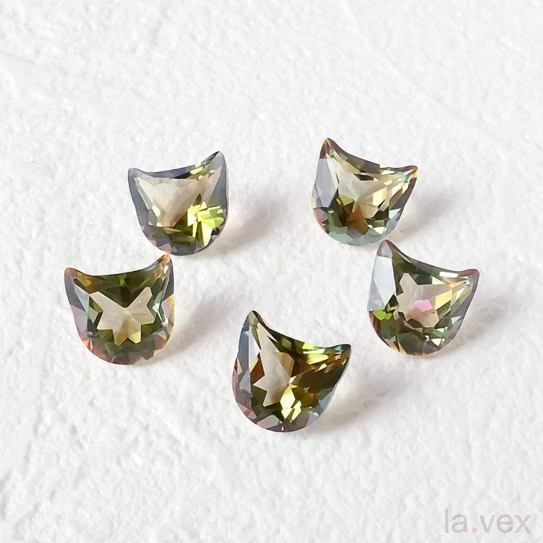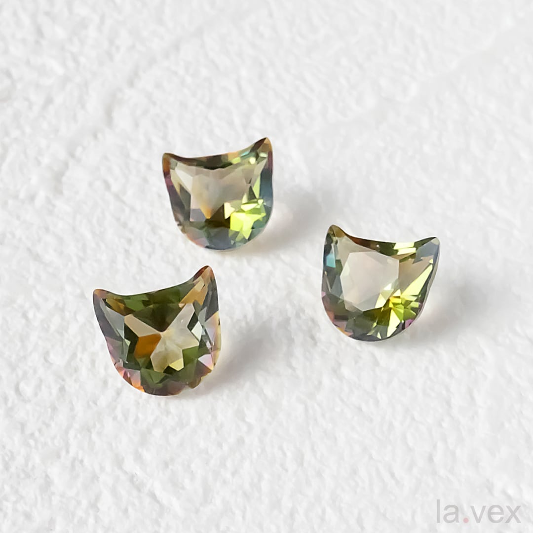 角度によってピンクやオレンジに光るピスタチオカラー
