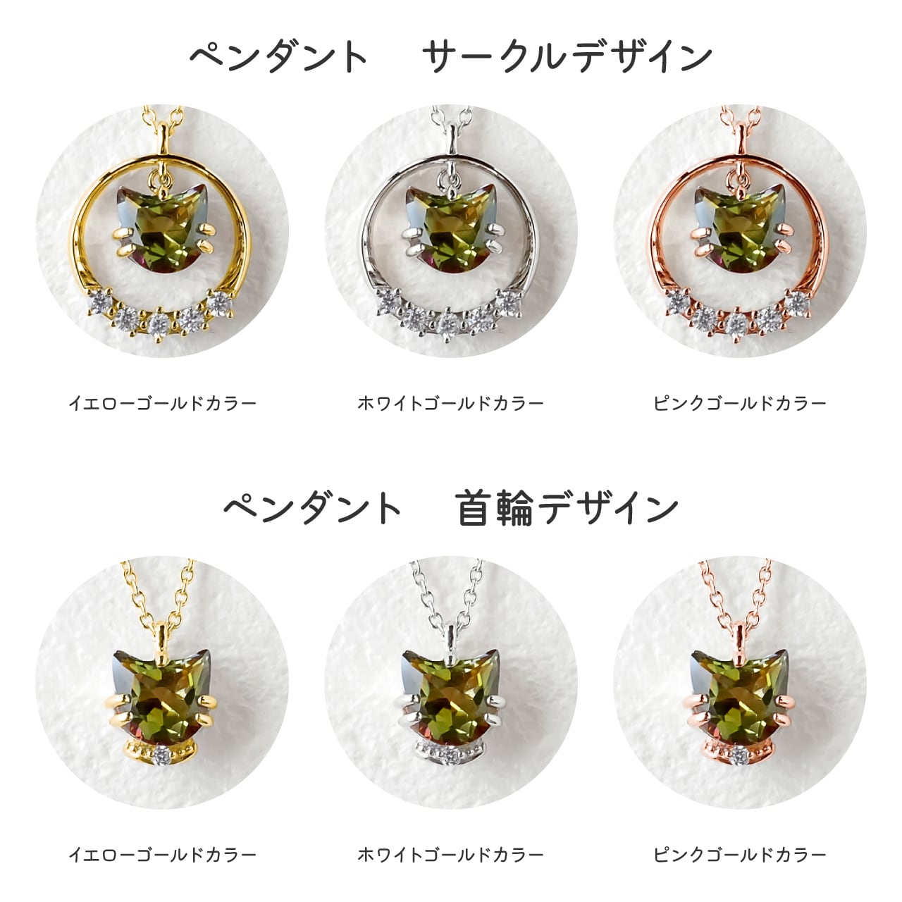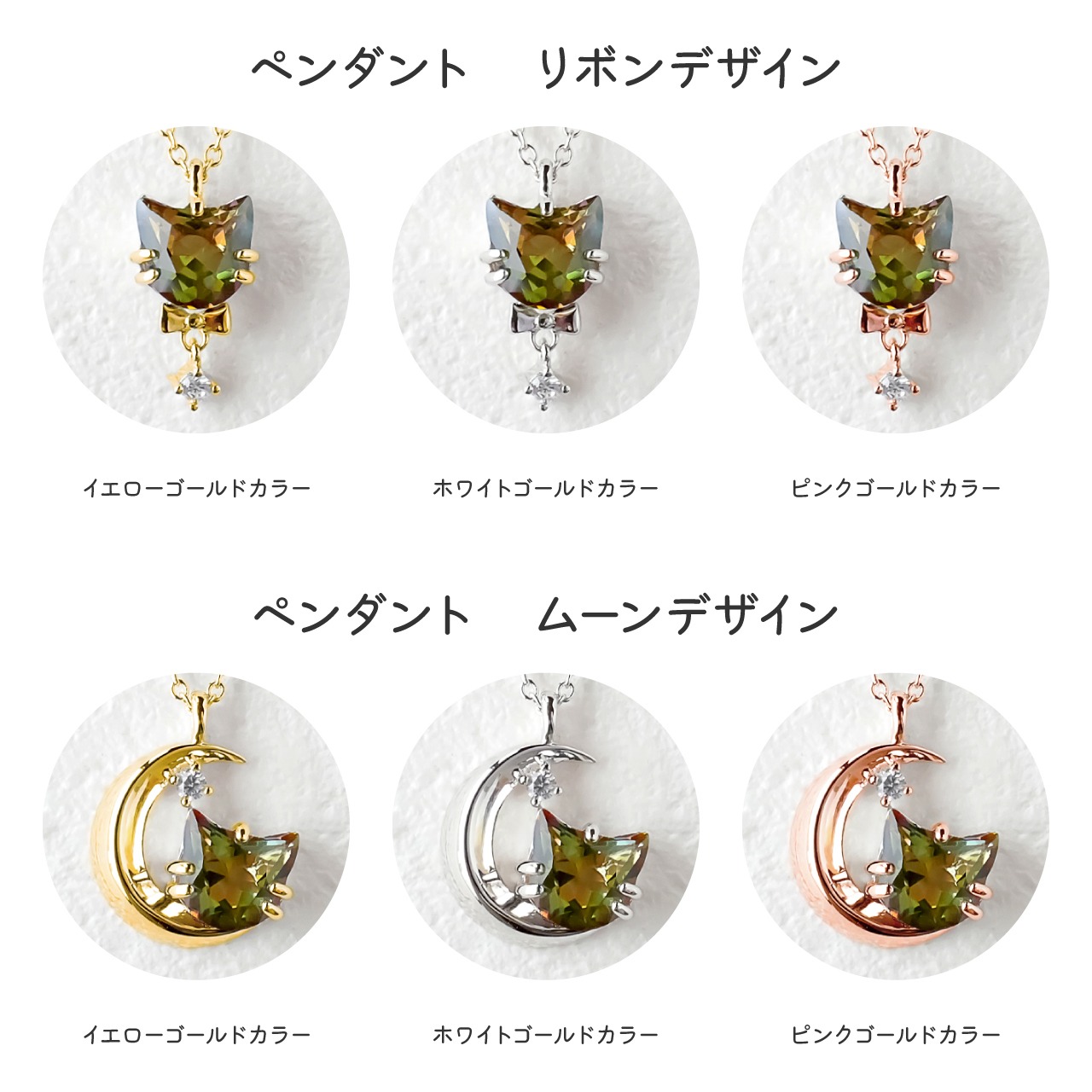 ペンダント4種またはリング2種×地金3色からお選びいただけます。