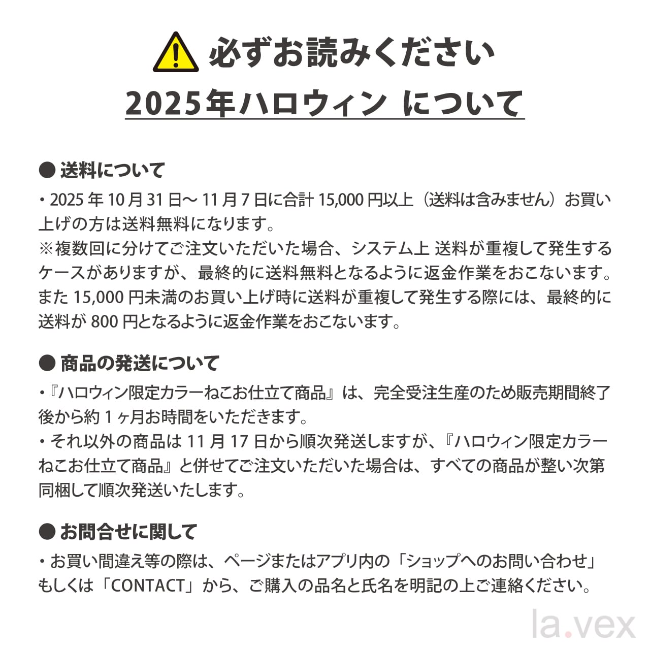 ※『ハロウィン限定カラーねこお仕立て商品』と併せてご注文の場合、販売期間終了から約1ヶ月後にすべての商品が整い次第同梱して順次発送いたします。